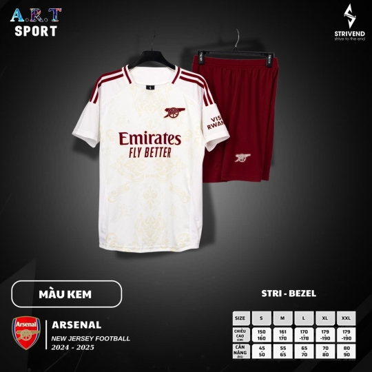 Quần Áo Đá Banh STRIVEND ARSENAL - Chất Vải Xịn Thoáng Mát, Nam Nữ Mặc Đều Đẹp, Co Giãn Thấm Hút